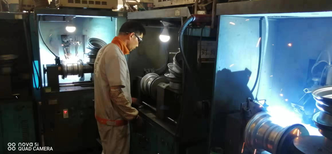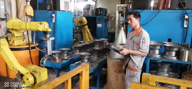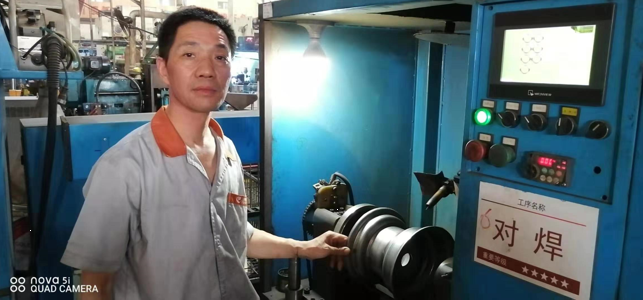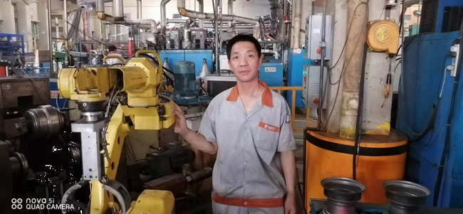他在默默的堅守自己的崗位,用實際行動完美解釋了“沒有學不會的技術(shù),只有懶惰的人”,他無時不刻在想著學習,學習新的知識努力掌握新的技術(shù),他由簡單的打磨工、滾圈、整型、壓芯子、鉆孔、攻絲、壓槽、試漏,到后來的手動氧弧焊、手動焊保護罩、對焊、焊芯子,再到現(xiàn)在最新的自動機械手臂操作,他通過自己的不懈努力、勤奮好學掌握了13項技術(shù),完美的詮釋了風馳的這種拼搏奮進、學無止境的匠人精神。