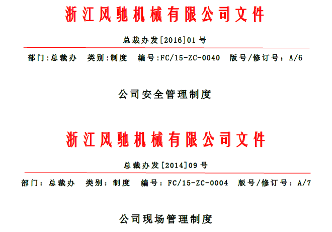 抓好生產必先抓好安全,通過對隱患警示、案列分析、抽檢方式、應急演練、安全檢查、隱患排查、風險辨識等措施全面提升全員安全意識,鼓動全員親身參與,扎實做好“重質量、反違章、強管理、抓落實、保安全”工作,齊心協力做好公司的現場、安全管理工作,堅持“安全第一、預防為主、綜合治理”的方針,實現“重大安全事故為零、火災事故為零、年度重傷事故為零、職業病發生率為零、重大危險源受控率為100%”的生產目標,以求促進企業安全生產管理水平提升,營造更加良好的安全生產環境,為實現風馳使命“引領低速車輪發展,為中國制造正名”打下夯實基礎。